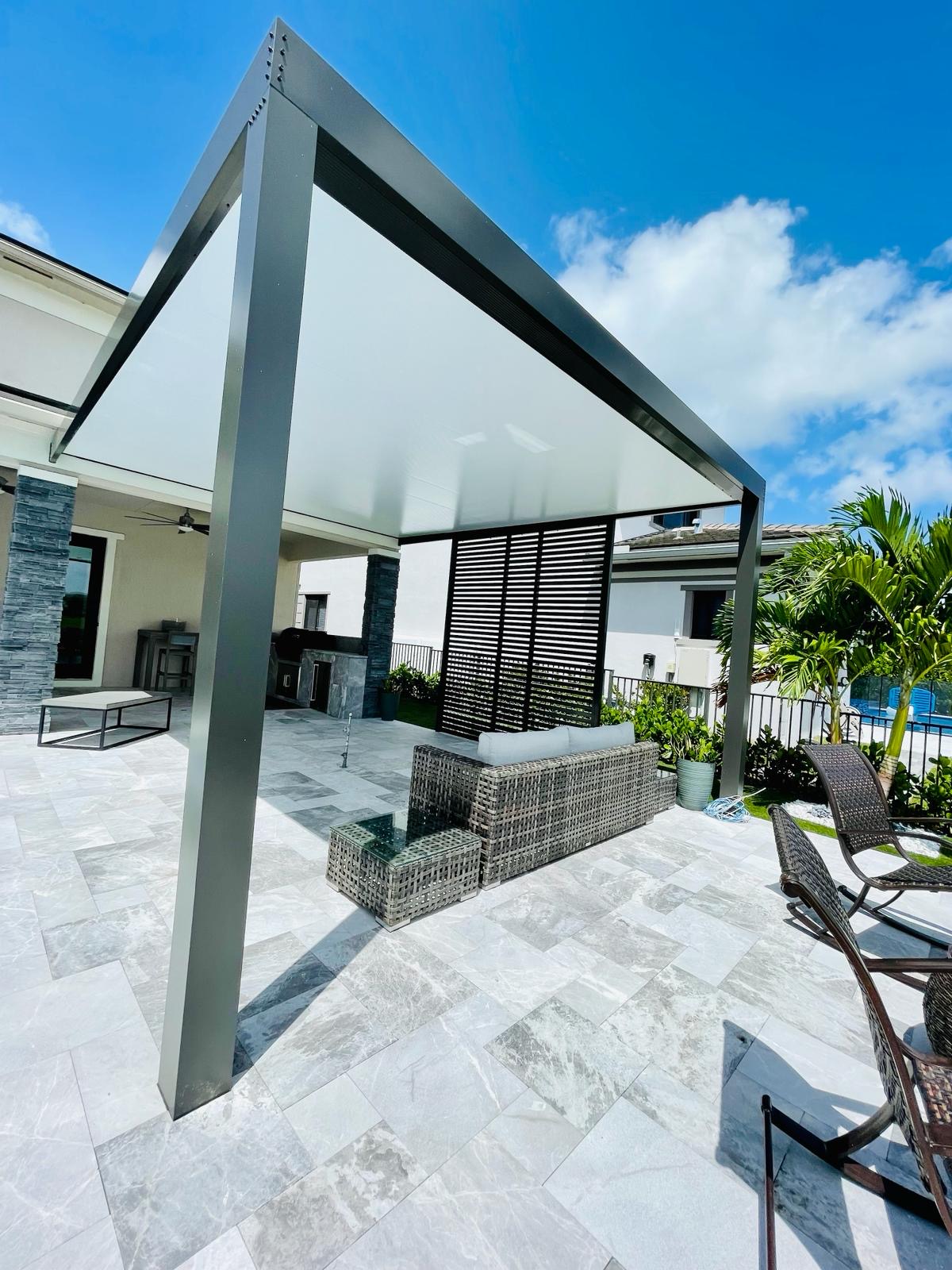 Motorized louvers, retractable canopies & lighting options