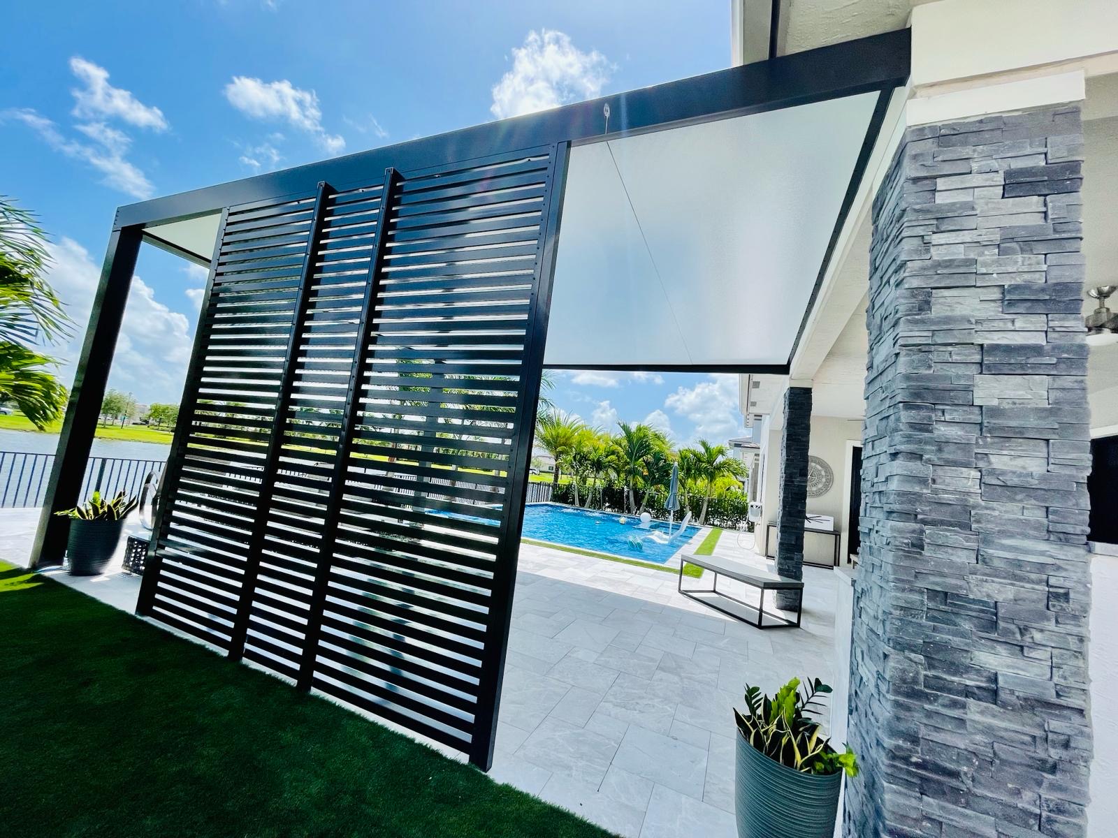 Motorized louvers, retractable canopies & lighting options
